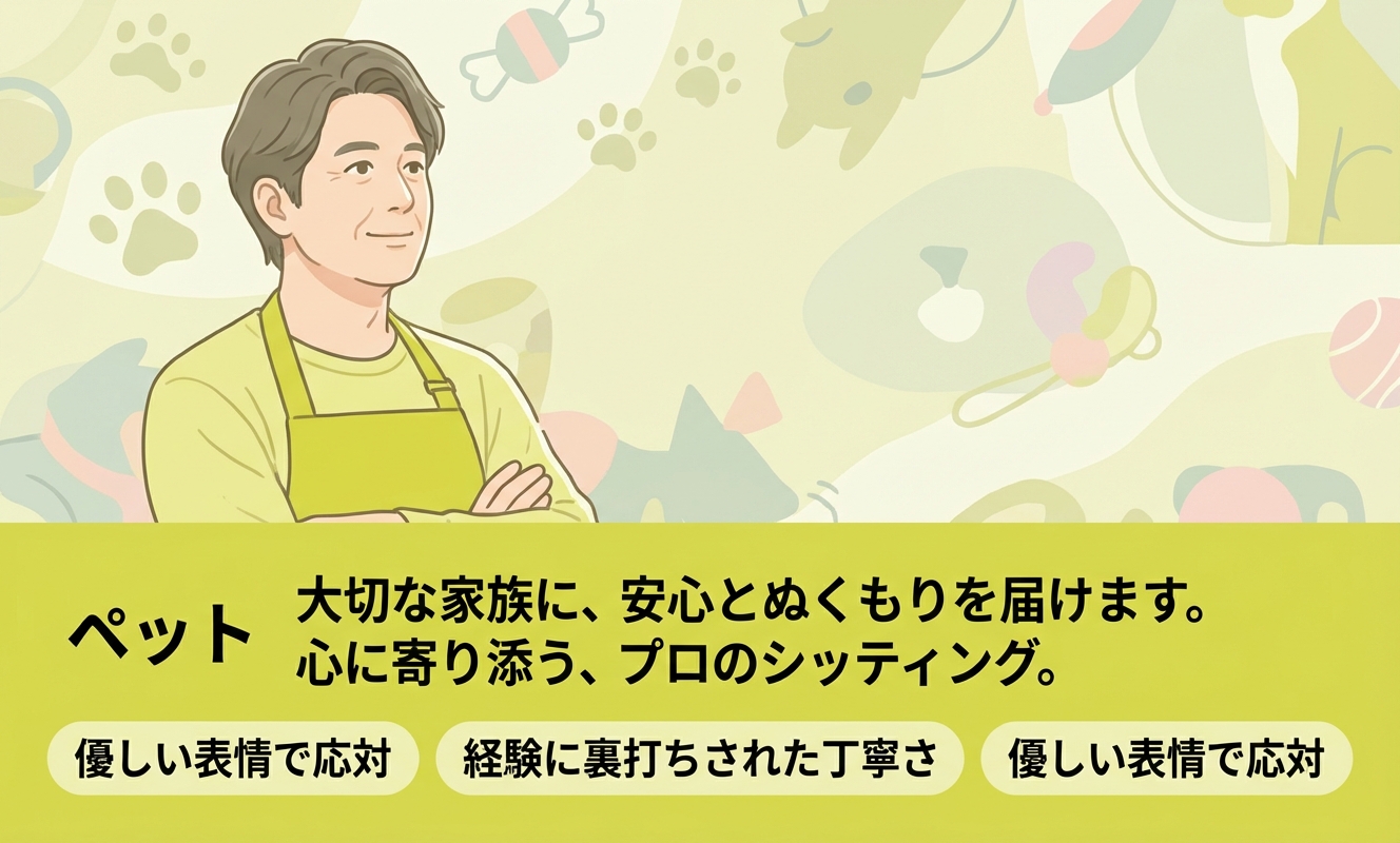 わんちゃんのシッター基本プランは1回45分。食事、トイレ掃除、散歩などのお世話を慣れているご自宅で提供しています。ねこちゃんの場合は2匹まで1回40分、ウサギなどの小動物は1回30分、ハムスターや鳥などは1回20分となっていて様々なペットのお世話に対応しています。いずれも1日に2回訪問するプランもあるのでペットの状態や飼い主様のご予定に合わせてお世話可能です。30分のお散歩プランもあるので運動させてあげたいというご希望にぴったりです。60分の介護サービスでは食事やトイレ以外身体清拭や強制排泄など専門的なケアも行っています。