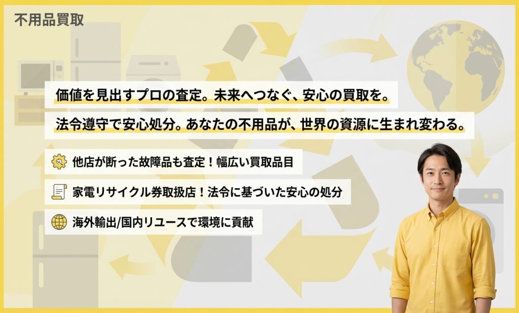 私たちは、お客様の「すぐに片付けたい」というご要望に応えるため、迅速な対応を常に心がけています。大きなベッドから小さな不用品まで、まとめて一括で買取・引き取りを行うことで、お客様の手間とご負担を大幅に軽減することができました。