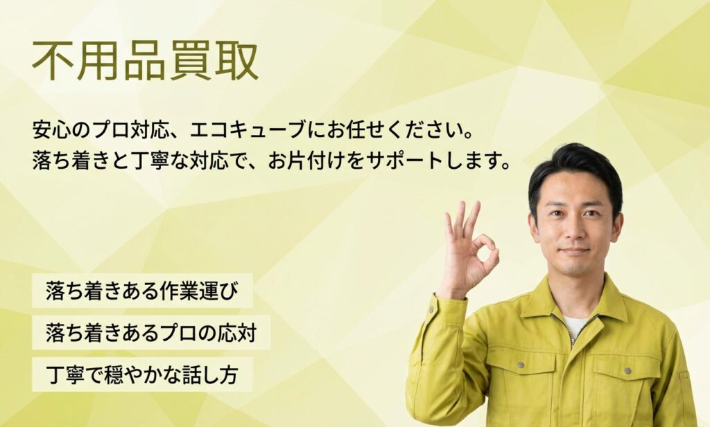 結果として、お客様は処分する予定だった費用が大きく浮いたことに加え、全ての品物を一度に整理できたことで、「引っ越し作業がとても楽になった」と大変喜んでいただけました。家一軒分の不用品整理は大きな労力と費用がかかります。私たちは、お客様のお手間とご負担を最小限に抑えるよう、誠実に対応いたします。