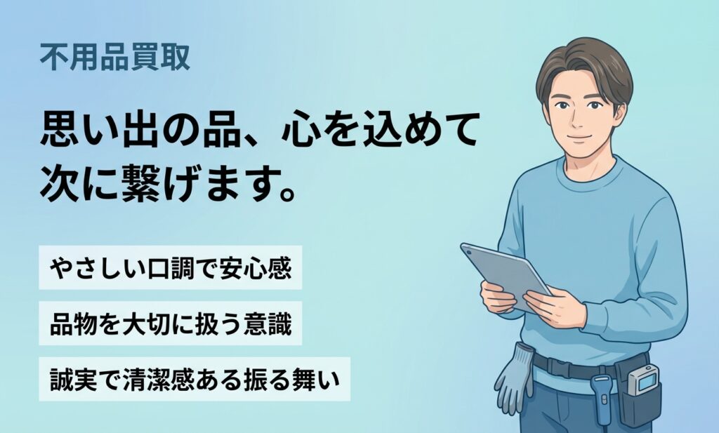 買取業者に依頼するのが初めてで、怖い印象がありましたが電話受付ではなんでも聞いてくれました。