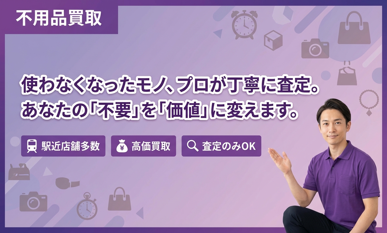 北海道から沖縄まで、全国に750以上の店舗がある買取専門店です。1階の路面に店舗を構えるなど、買取専門店にありがちな外から様子がわからないといったことがなく、安心して入ることができる店舗となっているので、「売りたいけど、買ってもらえるか不安」という方も気軽に相談することができます貴金属をはじめ、ブランド品・財布・切手・カメラ・タブレットなど幅広い商品の買い取りが可能です。動かなくなった時計、石の外れたリング、箱・保証書のない商品の買い取りにも対応しています。即現金化ができる店舗買取・プロの鑑定士が自宅を訪問して買取する出張買取・商品の写真を撮影して査定するLINE査定があります。