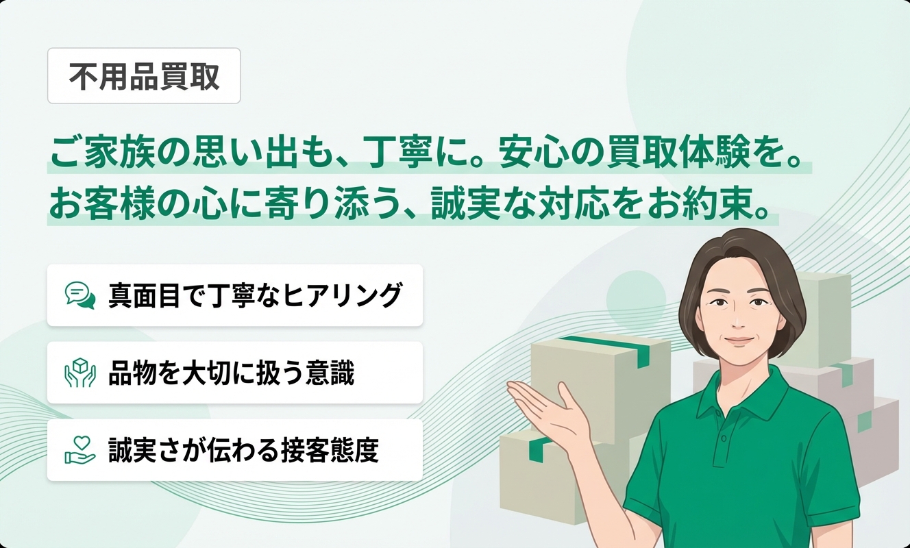 「高く買い取り、高く売る」がコンセプトの出張買取専門のリサイクル会社です。大型店舗を構えず、インターネット販売を主とすることで無駄な経費・コストを徹底的にカットし、高価買い取りを実現しています。実際に買い取りをした方の満足した項目の中で「買取金額」が半数以上を占め、リピート率は脅威の70%以上となっています。不用品でも、付属品がきちんとそろっているなど状態がいいものの場合には、査定額UPになったり、買取が不可能な商品についても回収・リサイクルをしたりしています。家具・家電・ブランド品・車など多種多様な商品の買取をしていることも特徴です。自社内でクリーニング・メンテナンスができるので、ブランド品は状態が悪くても買取できます。出張エリアは、東京都・埼玉県・神奈川県・千葉県となっています。