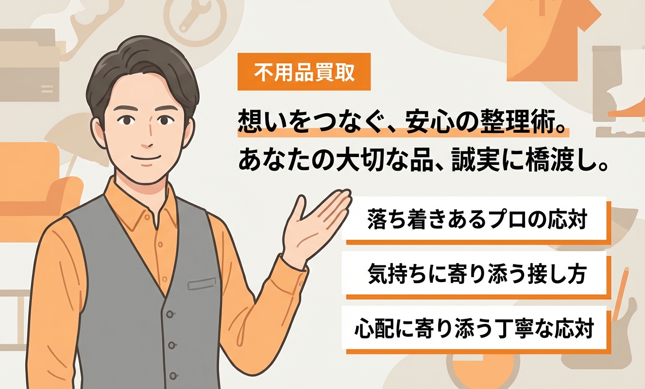 「もったいない」を合言葉に「ブックオフ」「エコ市場」「オーディン」といったリサイクルショップの運営をしている企業です。総合リサイクルショップの運営のほか、個人向けのお片付け整理サービス、出張買取サービス、ハウスクリーニングサービスをしています。出張買取サービスでは、有価品、無償譲渡品、不用品などを分別したあとの有価買取のほか、使用しない家財品の買取、引っ越し・移転・片づけの際にでてきた品物などの買取をしています。複数ブランドのリサイクルショップを運営しているので、幅広いジャンルの品物の買取が可能となっています。法人向けの事務所片付け・在庫品・余剰品の買取もしています。個人向け・法人向け出張買取サービスの対応エリアは、福島県・宮城県・山形県です。