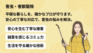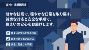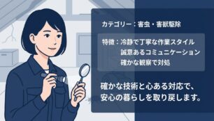 駆除作業だけでなく、屋外・室内それぞれの予防ポイントや季節ごとの注意点まで教えてくれ、生活の中で気をつける部分が明確に。「無理な追加費用はかからない」との説明もあり、安心して任せられるサービスだと感じました。