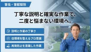 何社か調査や見積もりをお願いしましたが、調査の丁寧さと説明の分かりやすさで、駆除ワーカーズさんにお願いすることに決めました。