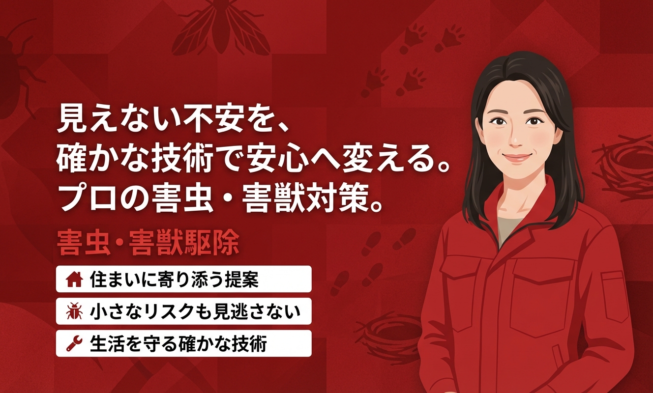 株式会社シンセンは、害虫獣の駆除・防除をはじめとして、建物の総合管理を専門とする会社です。創業から50年以上のあいだ、個人の住まいから、ビルやマンション、公共施設まで、さまざまな建物のメンテナンスを手掛けてきた実績があります。害虫駆除に関しては、駆除だけでなく予防の視点をもって、害虫を発生させない環境づくりのために、効果的な環境改善策や管理計画を提案してもらえます。岐阜県の大垣市・多治見市・岐阜市と愛知県東海市に拠点があり、メールでの問い合わせは24時間受け付けています。