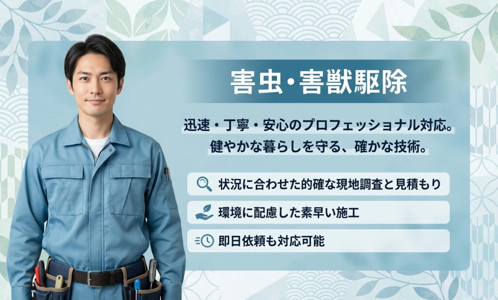 害虫・害獣の駆除は緊急性が高いことが多いため、多くの業者は緊急対応サービスを提供しています。ただし、緊急対応の場合、追加料金が発生することがあるので注意が必要です。