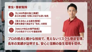 お客様からは、「店舗の営業スケジュールに合わせて柔軟に動いてくれた」「煙を使わないなど、お店の状況を最優先に考えてくれた」と、作業内容だけでなく配慮の行き届いた対応に深い信頼をいただきました。