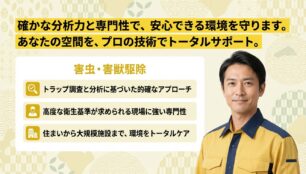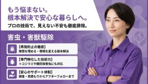 ムカデやヤスデ、ベッドバグ(トコジラミ)、チャタテムシなどは、人間やペットにアレルギーや皮膚病、さらには感染症を引き起こす可能性のある有害な害虫です。これらの害虫は急速に繁殖するため、少数でも見つけたらすぐに対処する必要があります。自分で駆除を試みると、不完全な処理により害虫の増殖を許してしまうことがあります。したがって、これらの害虫を発見した際には、専門の駆除業者への依頼も検討してみましょう。