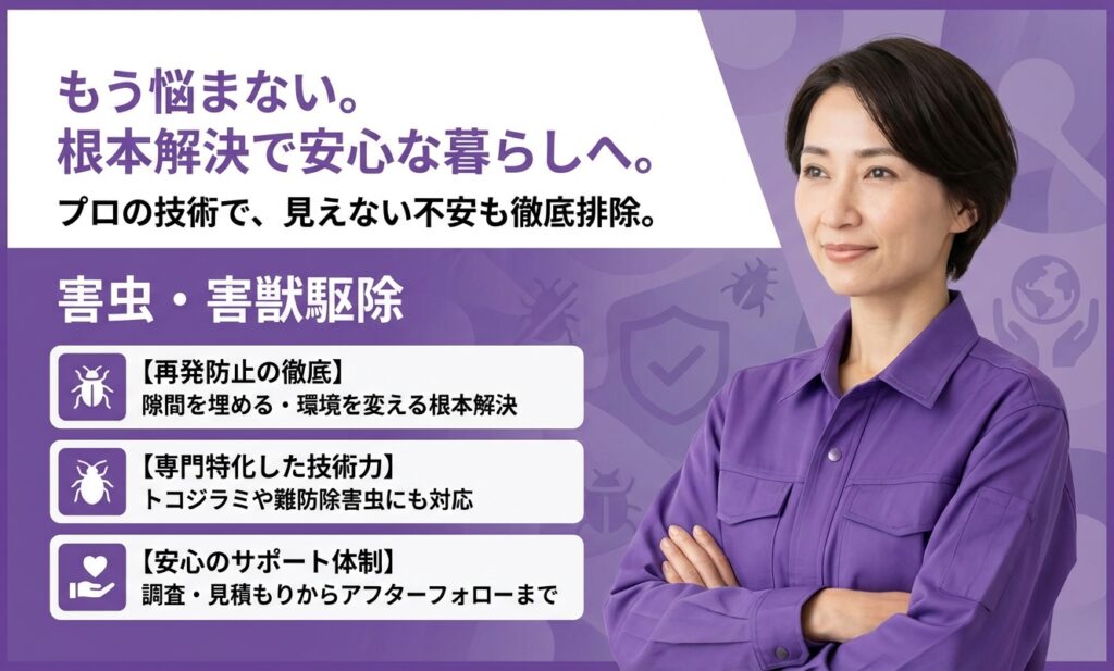 【専門特化した技術力】トコジラミや難防除害虫にも対応