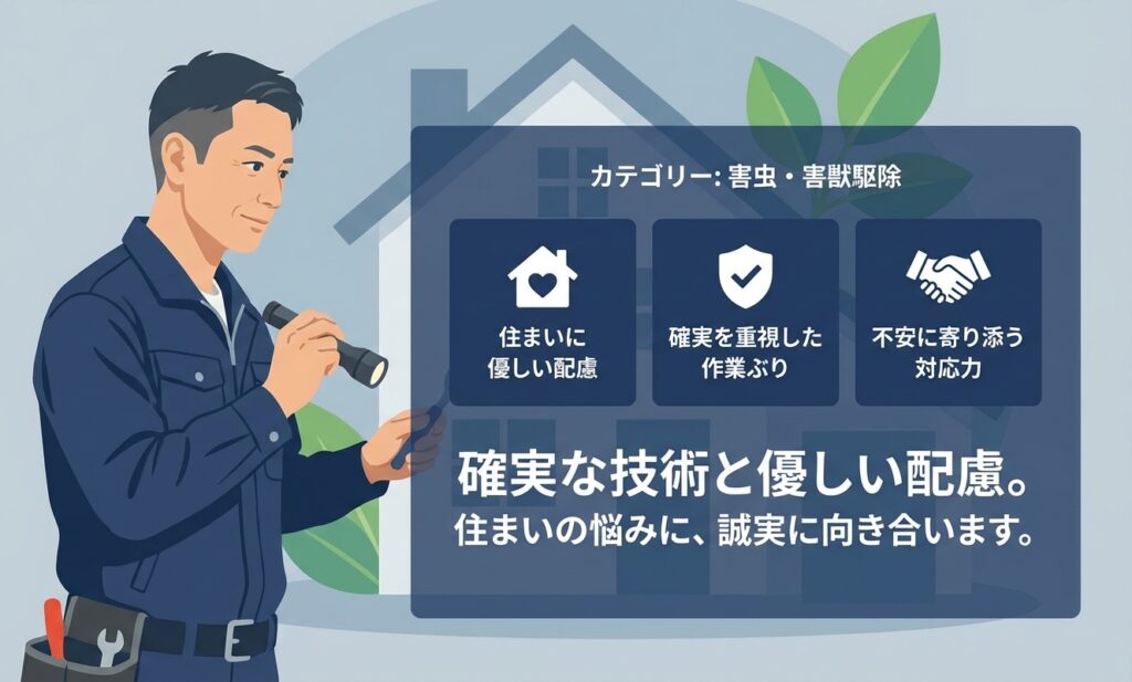 庭先で荒らされた跡が続き、気になって相談しました。スタッフさんが行動の癖や通り道を丁寧に確認し、追い出しから対策まで手際よく対応。安心できました。