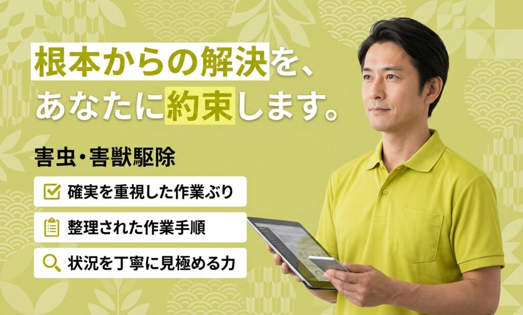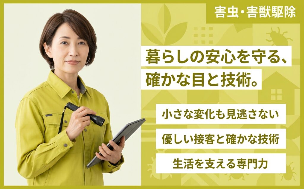 クリーニングサービスやエアコンサービスなど様々なサービスを展開しています。その中で害虫サービスも展開しており、害虫・害獣・害鳥の駆除・防除サービスも提供しています。専用の薬剤と道具で駆除をします。