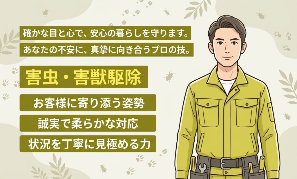 庭先で荒らされた跡が続き、気になって相談しました。スタッフさんが行動の癖や通り道を丁寧に確認し、追い出しから対策まで手際よく対応。安心できました。