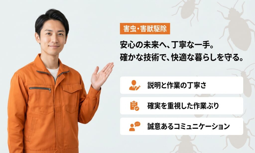 クリーニングサービスやエアコンサービスなど様々なサービスを展開しています。その中で害虫サービスも展開しており、害虫・害獣・害鳥の駆除・防除サービスも提供しています。専用の薬剤と道具で駆除をします。