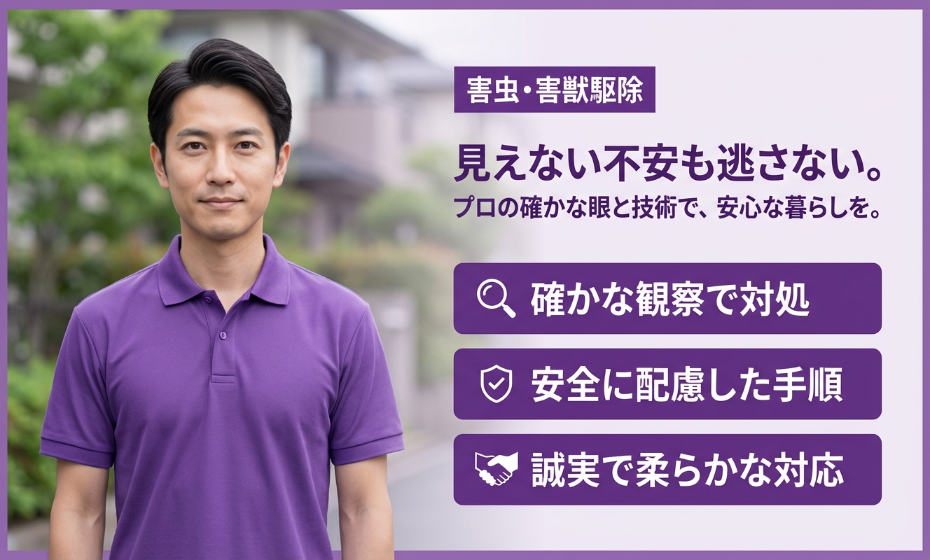 シロアリをはじめ、害虫の駆除のサービスを提供しています。「新築予防隊」では、大切なマイホーム新築の際に適切なシロアリ予防策を取るサービスを提供しています。また、家や害虫に関して相談ができる窓口もあります。