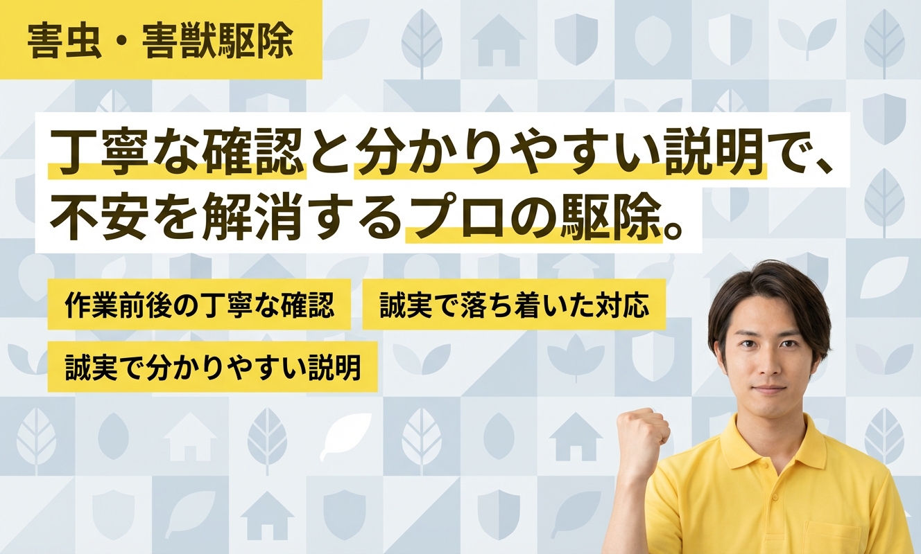 関西を中心に害獣駆除を手掛ける「害獣バーサス」は、イタチやネズミ、ハクビシン、アライグマ、コウモリ、シロアリ、ハチなど、幅広い野生動物に対応。365日24時間体制で即日出動可能、訪問調査・見積もりは無料です。専門スタッフが駆除から清掃・除菌・再発防止策まで一貫対応する点が特長。現場では専用スコープを用いた徹底調査や、侵入口封鎖など、細部まで対策を実施します。駆除後にはアフターケアとして無料定期点検を提供。現金・振込・クレジット・PayPay対応で、現地見積もり当日に施工も可能。利用者からは「丁寧な対応」「信頼できる作業」と高評価が多く、駆除だけでなく住宅修繕も任せられる点が評価されています。