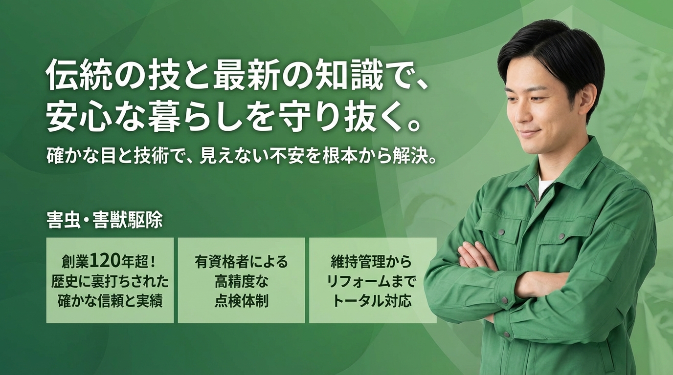 株式会社アイジーコンサルティングは、120年を超える圧倒的な社歴と実績を持つ住宅メンテナンスの老舗企業です。シロアリ防除のパイオニアとしての誇りを持ち、住宅メンテナンス診断士などの有資格者による質の高い点検に定評があります。単なる修理や施工にとどまらず、住まいの現状を正確に把握し、長期的な視点でのアドバイスを行う姿勢が特徴です。建物を永く、大切に住み続けたいと考える住宅オーナーにとって、確かな歴史に裏打ちされた安心感を提供してくれる存在と言えるでしょう。