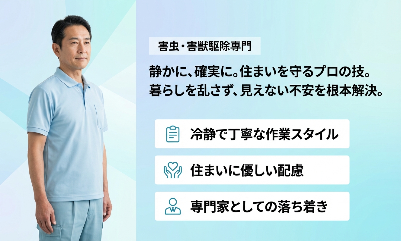 消毒作業やビル管理、清掃と様々な事業を展開している中で害虫駆除のサービスも提供しています。害虫及び害獣の防除管理をしており、高度な専門知識と実績で迅速で確かな作業を提供しています。