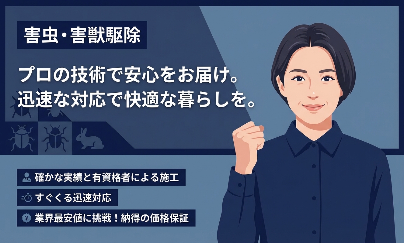 すぐくるは、その屋号の通り、お客様のトラブルに対し迅速な対応をモットーとする地域密着の専門業者です。市役所登録事業者としての信頼性に加え、罠・網・銃猟の全免許を所持する有資格者が在籍しており、高度な知識に基づいた確実な駆除が期待できます。また、他社見積もりが高額な場合は相談可能で、価格面でも安心です。